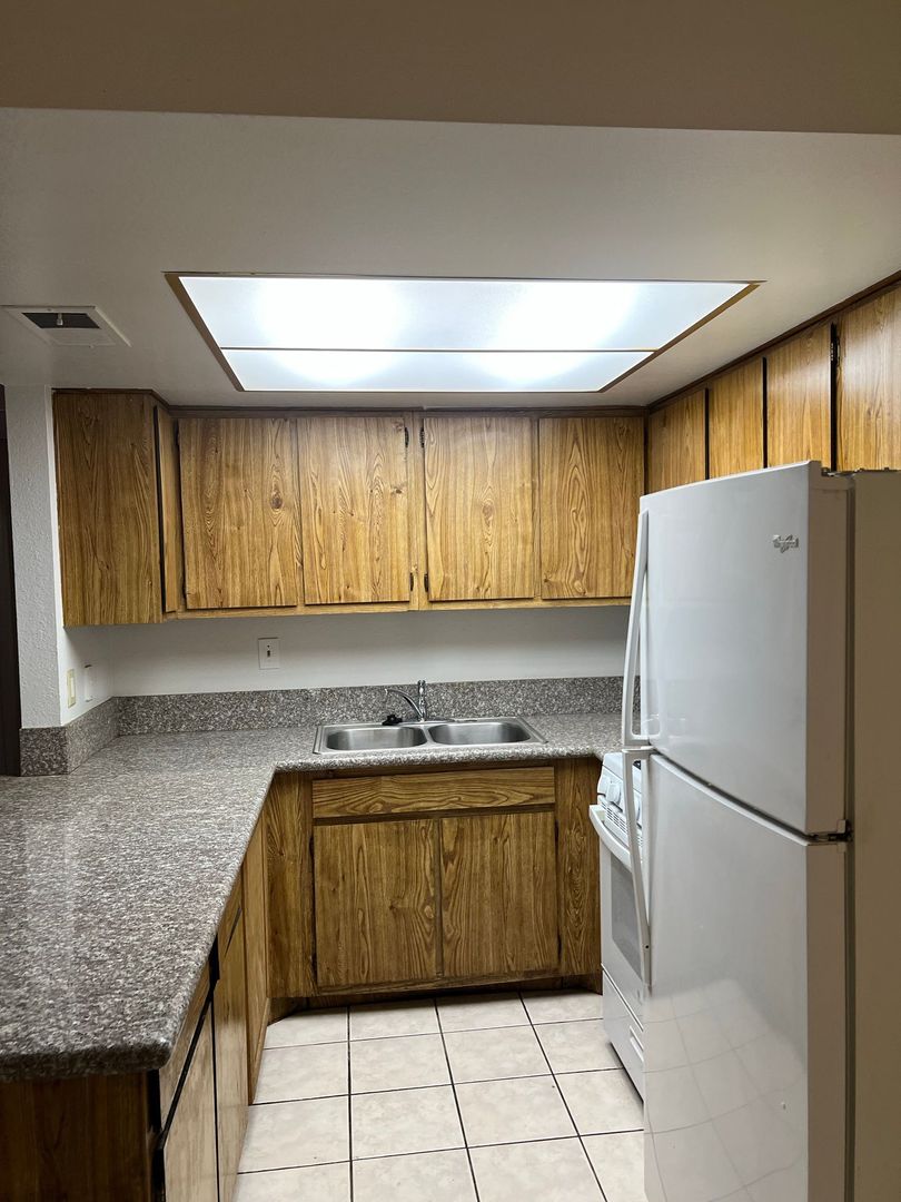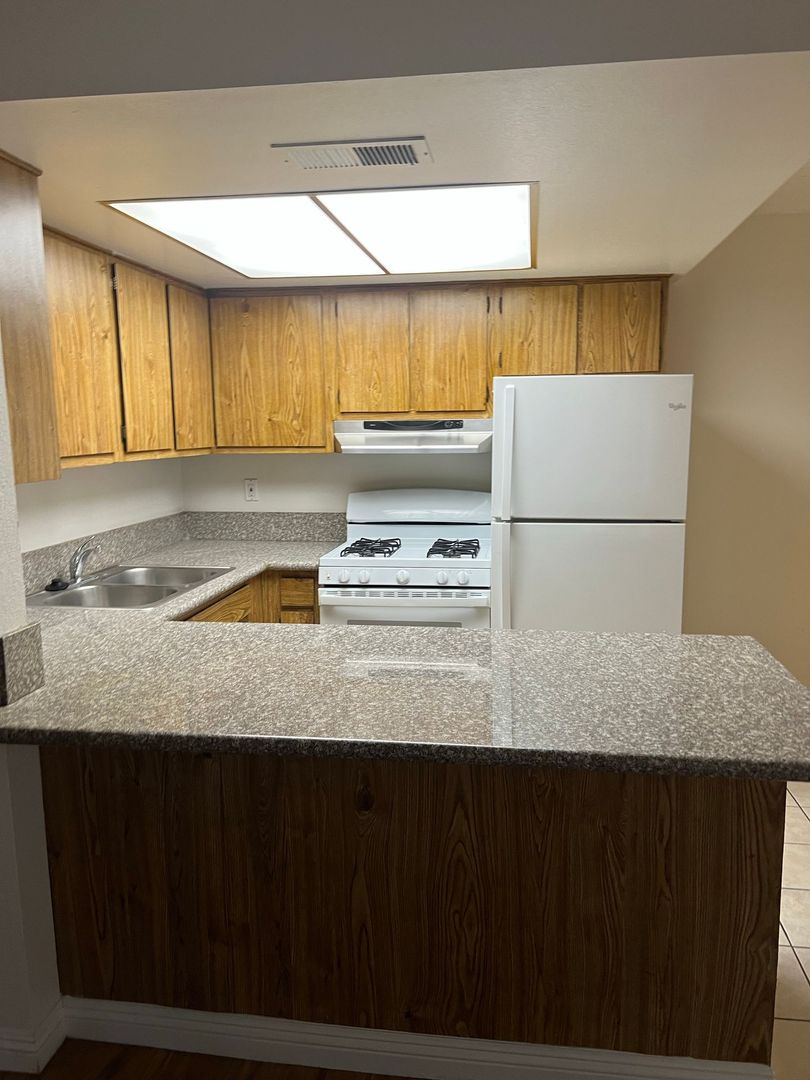 Two-bedroom one bath. Granite countertops , hardwood like floors .