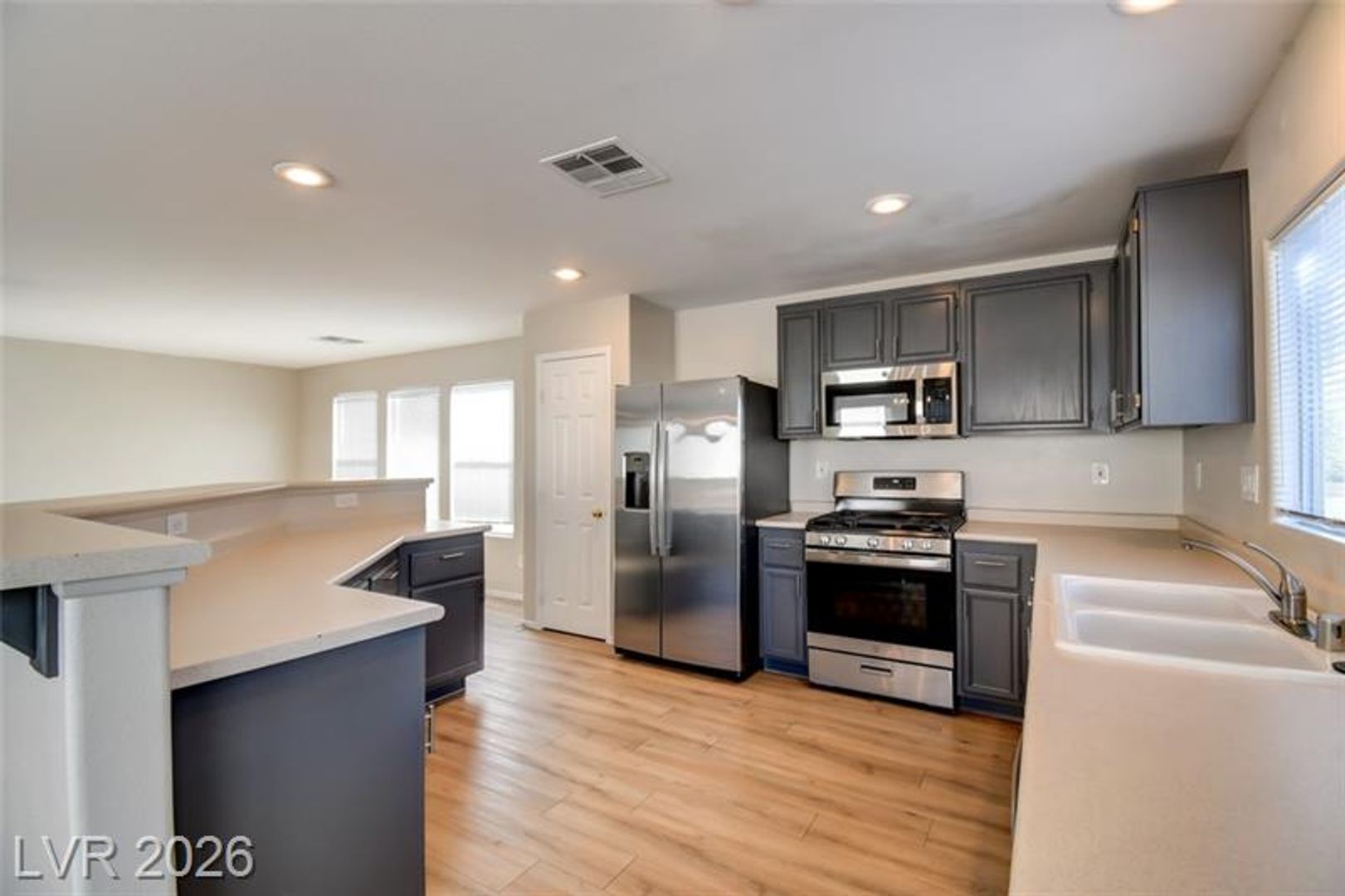 Beautiful Southwest split-level home with a functional, spacious layout. This 4-bedroom, 2.5-bath property features the primary bedroom, living room, and kitchen on the upper level, creating an ideal space for everyday living and entertaining. The open kitchen boasts a large breakfast bar, perfect for casual dining and gatherings. The lower level includes three additional bedrooms and a generous family room, providing added flexibility and space separation. Desert landscaping offers low-maintenance outdoor living. A great opportunity to enjoy comfort and convenience in a well-designed home.