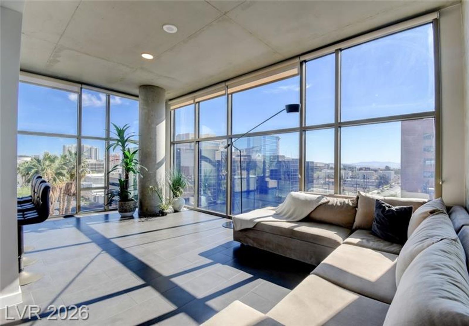 Gorgeous Views! Fully Furnished Modern loft-style corner unit in the highly sought-after Juhl community in Downtown Las Vegas. This 2-bedroom, 2-bath residence features 10' floor-to-ceiling wraparound windows offering abundant natural light and city views. The open-concept kitchen flows into the spacious great room, ideal for entertaining. Upgrades include porcelain tile flooring throughout, stainless steel GE appliances, a contemporary backsplash, a custom wine rack, and a large island with quartz countertops and an undermount sink. Residents enjoy resort-style amenities including concierge service, a two-story fitness center overlooking the pool and Las Vegas Strip, resort pool with outdoor kitchen and grills, cabanas, a fireplace, a spa, lush landscaping, and an outdoor movie theater. Available for short term or long-term lease.